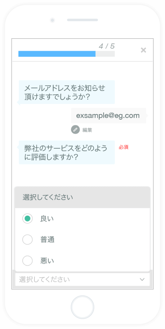 トーク形式の入力や日付入力など、用途に合わせたカスタマイズも可能